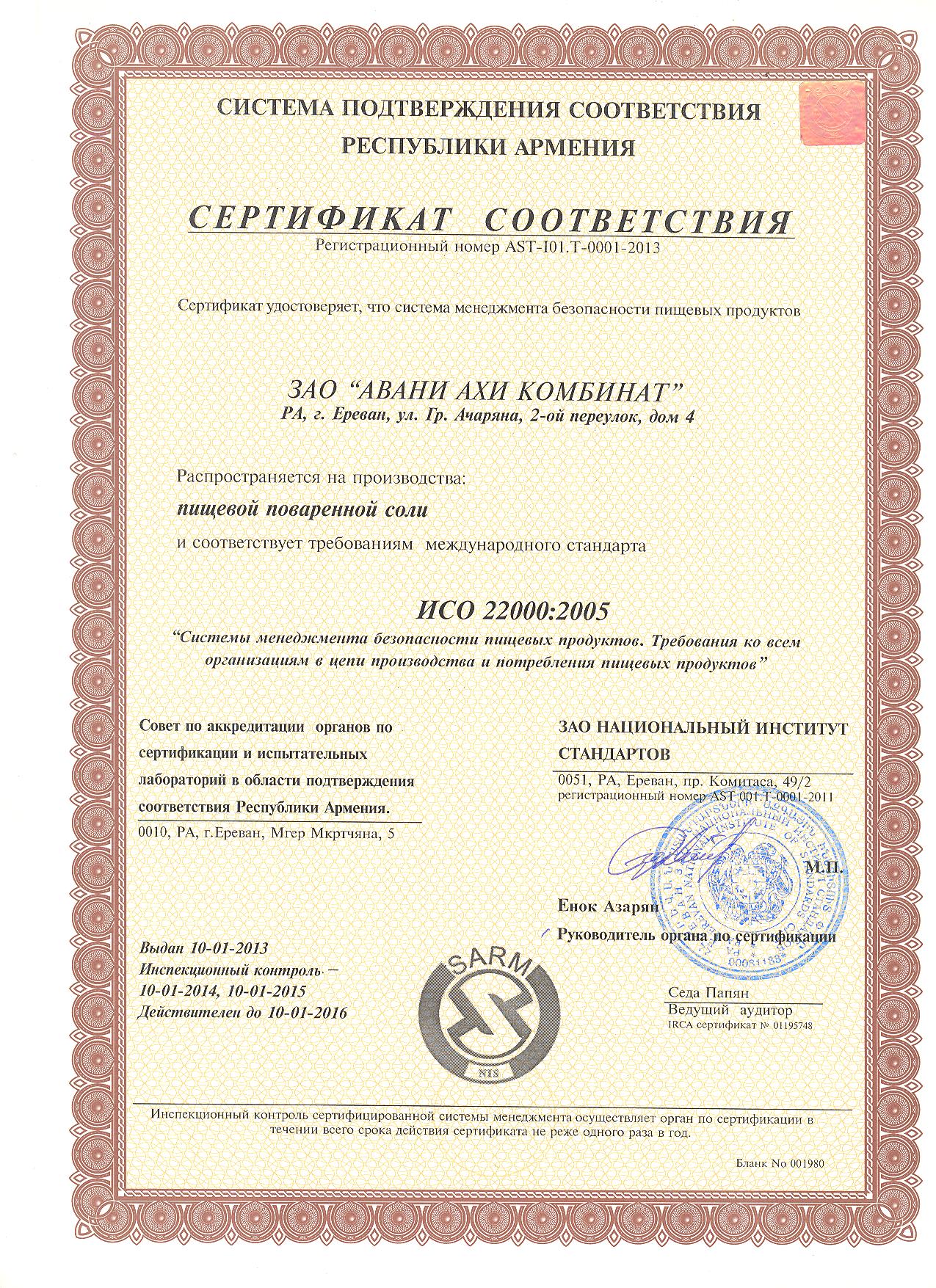 Республика Армения, 0040 г. Ереван, 2 пер. Ул. Ачаряна, 4 Тел.: (+37410) 62-64-30, 61-43-91 Факс: (+37410) 62-42-00, 62-14-10 E-mail: armsalt@armsalt.am |